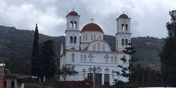 In Kandanos ist es gleich kühler und noch mehr bedeckt, Zeit eine Jacke anzuziehen. Nicht so schön für das Bild von der Kirche, aber super für unsern Aufstieg zu Fuß!