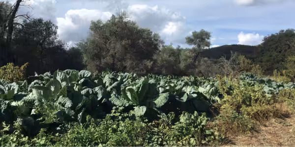 Mittagspause. Den Rückweg zurück nach Kandanos nehmen wir auf einer anderen Route. Unter anderem sehen wir ein riesiges Feld voller Mutant Kohlköpfe. Die Pflanzen sind fast so hoch wie ich selber!