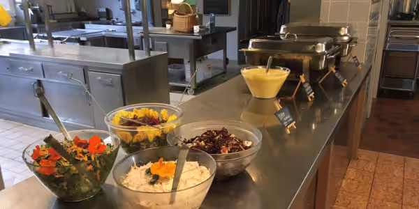 Der 12. September war ab 10:00 geprägt von einem neuen Experiment zur Küchenorganisation in der Nature Community. Ein Team ist für alles zuständig, statt viele verschiedene Pläne für Kochen, Spülen, Abräumen usw. einzeln auszufüllen haben wir uns in einem kleinen Team abgesprochen. Hier das erste Ergebnis, das Mittagessen 😋.